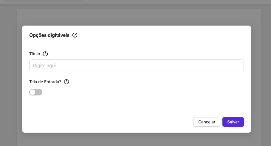 Para adicionar um novo campo, clique em Novo digitável. Ao fazer isso, uma janela será exibida com as seguintes opções:
